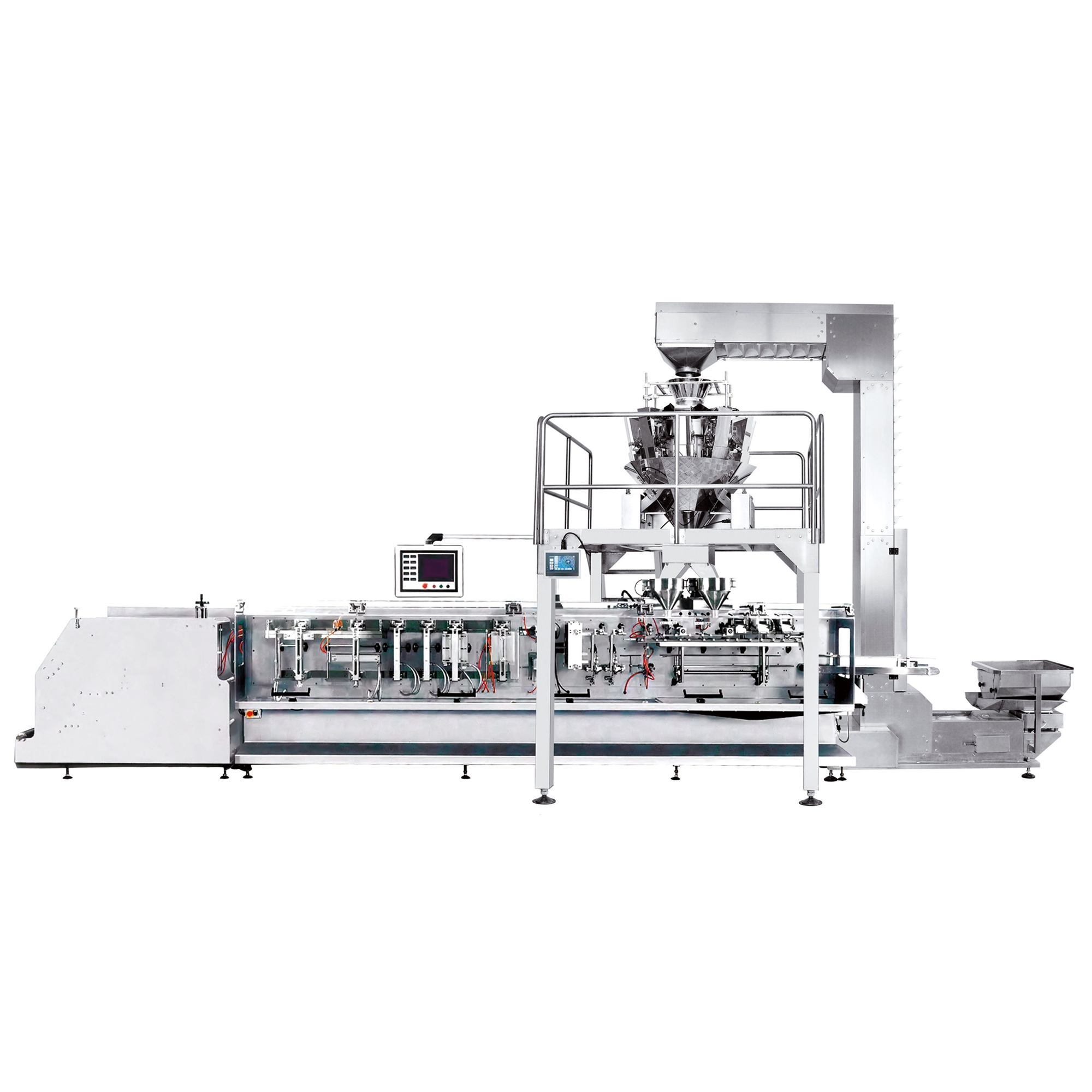 Machine d'emballage alimentaire rotative pour collations sous vide avec peseuse multi-têtes pour peser les aliments pour collations d'emballage