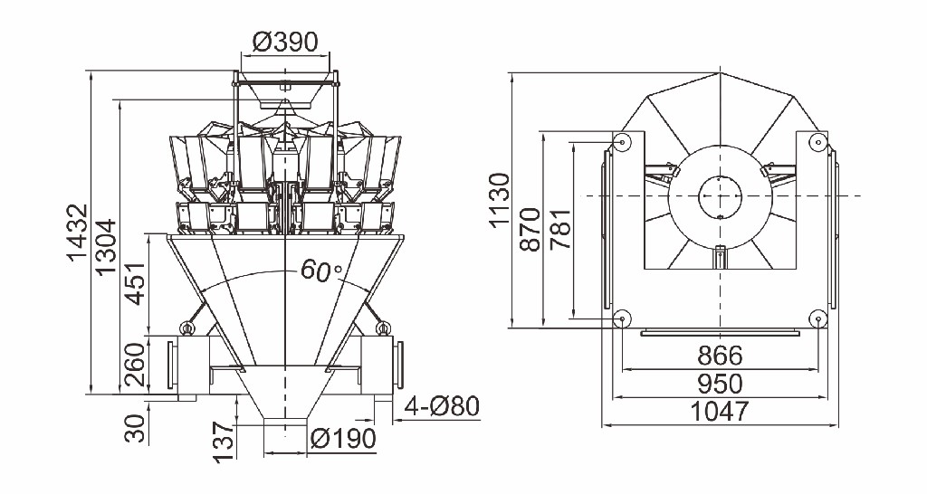4. 60° dimple discharge chute contributes to less sticky problems.